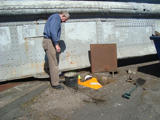 - Volunteers continued to excavate the four support wheels and generally clean round them, excavated and cleaned the track under the tail of the Bridge, and took off the tail-wheel bearing caps and serviced the bearings.