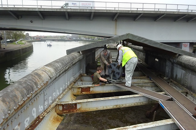 Maggie, Bob and Charlie got the wheel onto the bridge, ready to wheel along the Youngmans boards. David came to help |