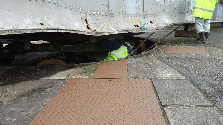 Alessandra from English Heritage came to help so she was also given a section of the turntable to clean and paint |